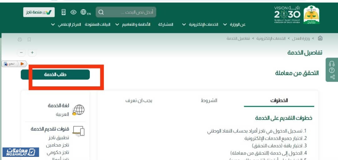- الضغط على أيقونة “طلب الخدمة”.